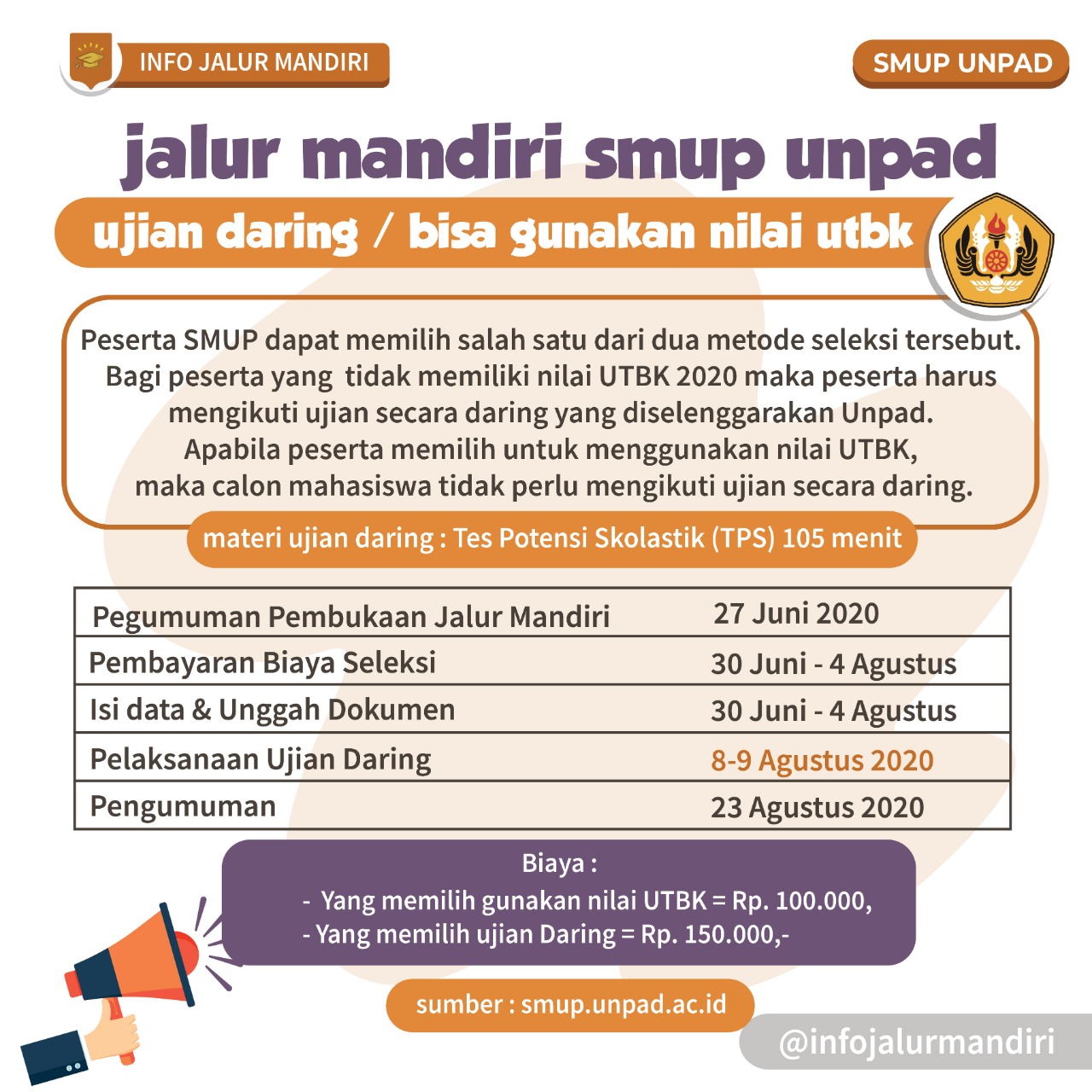 Mandiri Unpad - Infomasukptn 2021 On Twitter Info Jalur Mandiri Smup Unpad 2020 Menggunakan Nilai Utbk Unpad Bs Minta Ke Ltmpt Mungkin Nanti Terintegrasi Datanya Biaya Rp 500 000 Kuota 40 / Kenapa ada jalur seleksi mandiri unpad, sih?. Bni, bri, btn dan bank mandiri. Bersamaan dengan perubahan aturan main sbmptn sebenarnya, unpad sudah memiliki seleksi mandiri smup. Nah, itu dia informasi seputar seleksi mandiri unpad program sarjana tahun 2021. Segala informasi yang ada di website. Holaaa pejuang unpad, smup unpad merupakan jalur ujian mandiri unpad, bagi yg pengen banget masuk unpad ikuti hai, eduholic!
